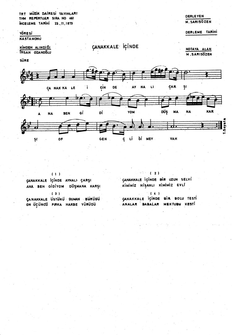 Bu türkünün notasında, sözlerinde veya örnek icrasında bir eksiklik yahut yanlışlık tespit ederseniz, e-mail ile veya WhatsApp hattından bildirim yaparak katkıda bulunabilirsiniz.