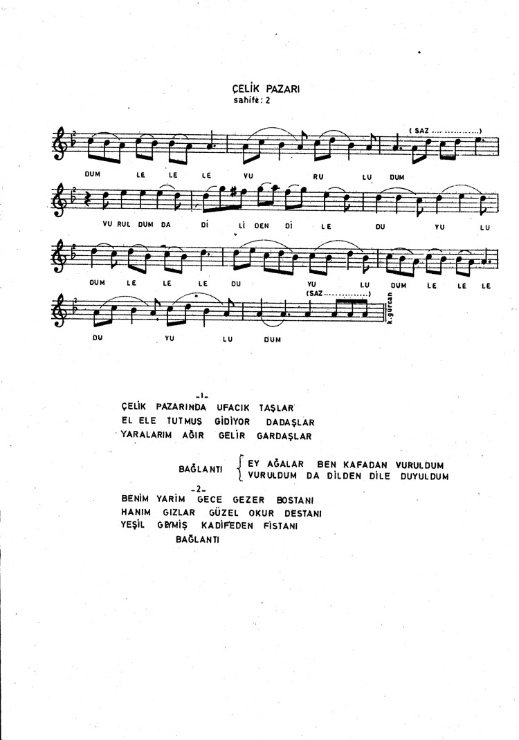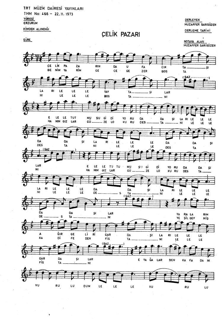 Bu türkünün notasında, sözlerinde veya örnek icrasında bir eksiklik yahut yanlışlık tespit ederseniz, e-mail ile veya WhatsApp hattından bildirim yaparak katkıda bulunabilirsiniz.