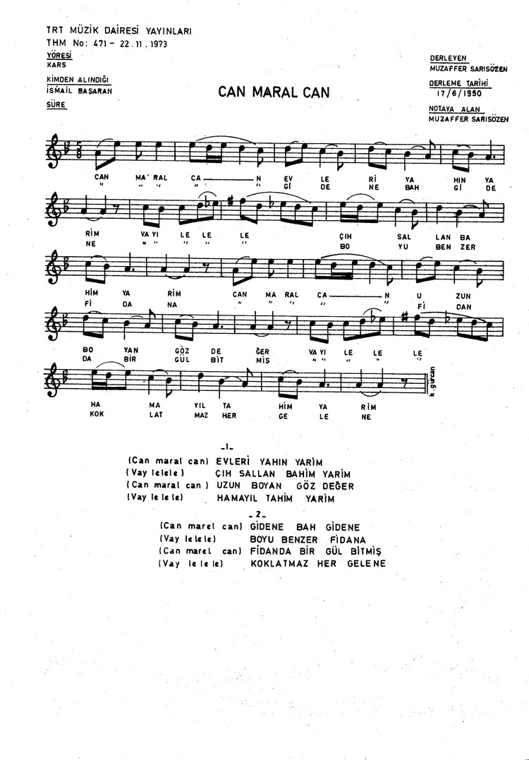 Can maral can (Evleri yakın yarim) (Rep.No: 471)