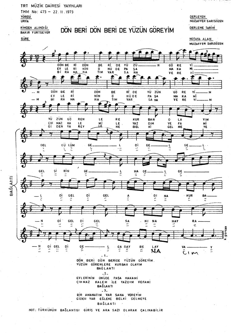 Dön beri dön beri de yüzün göreyim (Rep.No: 473)