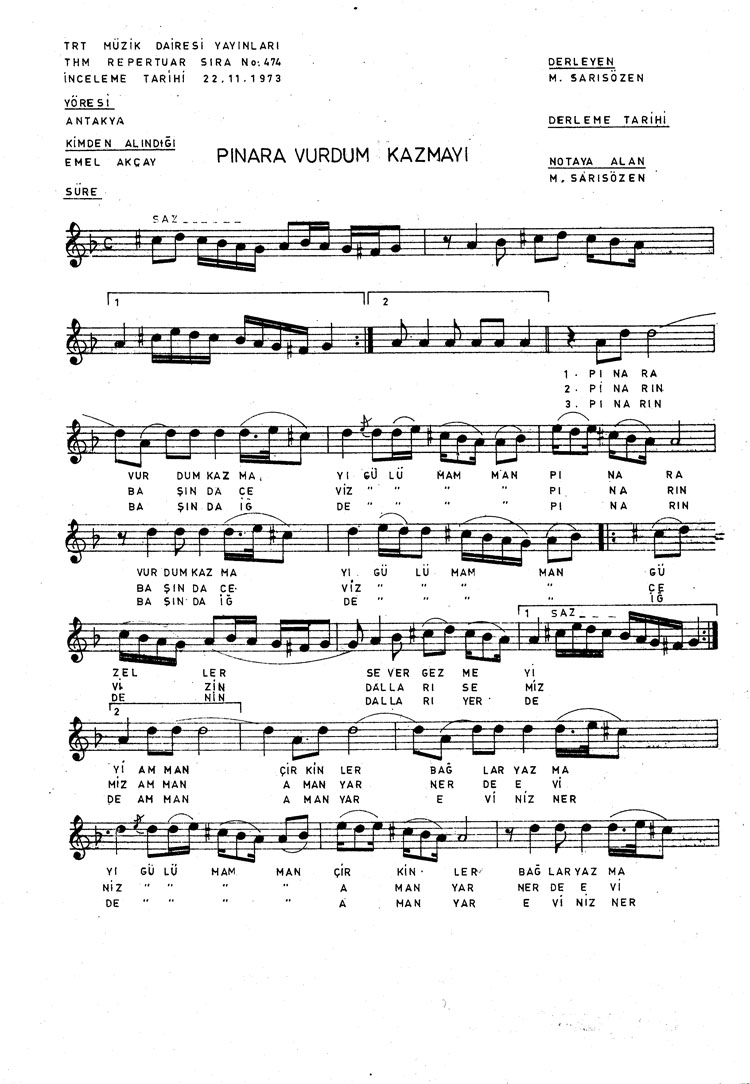 Bu türkünün notasında, sözlerinde veya örnek icrasında bir eksiklik yahut yanlışlık tespit ederseniz, e-mail ile veya WhatsApp hattından bildirim yaparak katkıda bulunabilirsiniz.