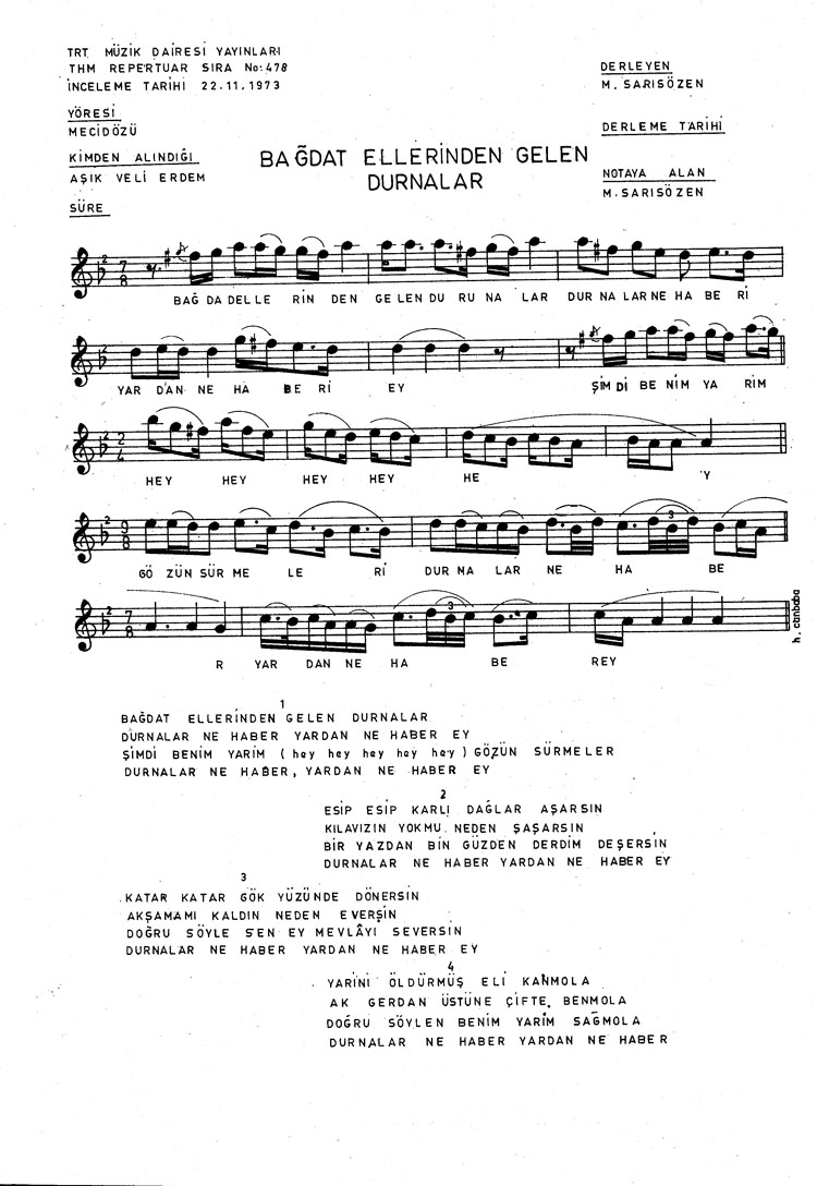 Bu türkünün notasında, sözlerinde veya örnek icrasında bir eksiklik yahut yanlışlık tespit ederseniz, e-mail ile veya WhatsApp hattından bildirim yaparak katkıda bulunabilirsiniz.