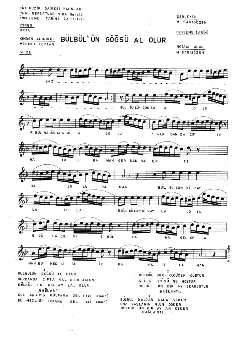Bülbülün göğsü al olur (Rep.No: 482)