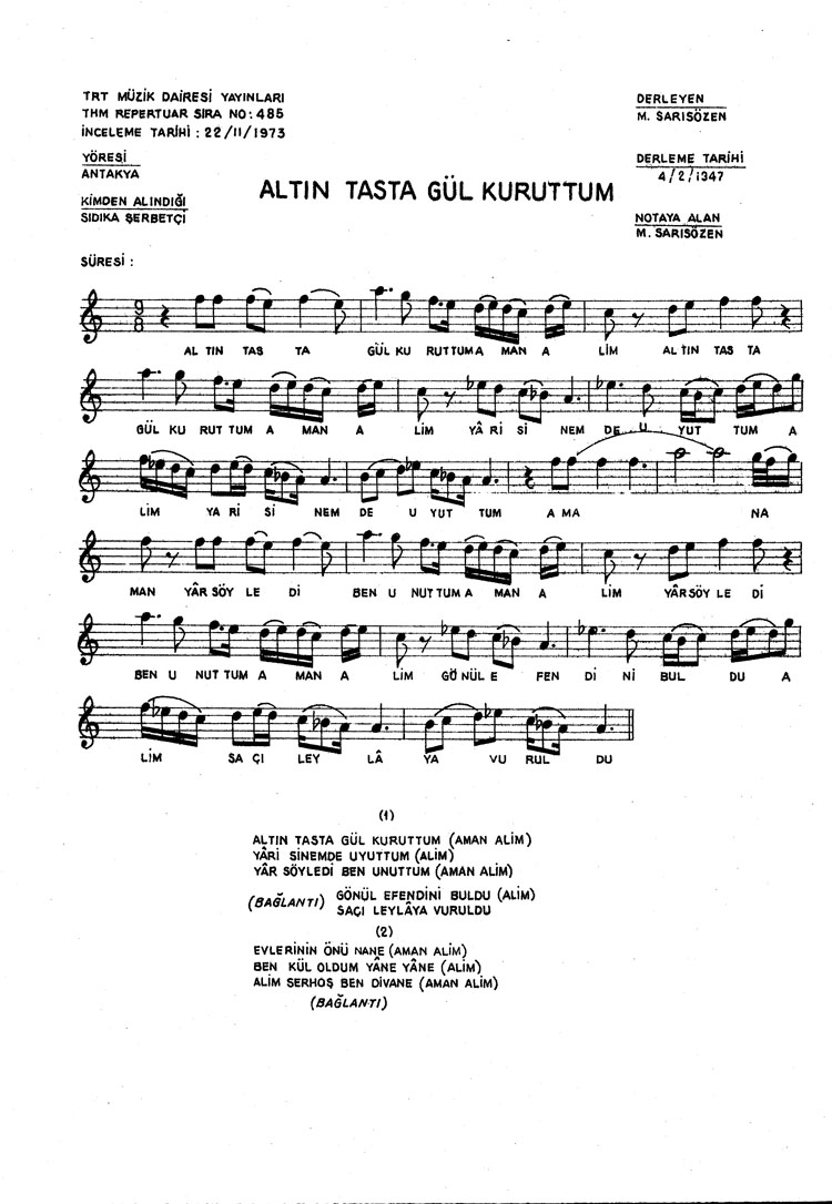 Bu türkünün notasında, sözlerinde veya örnek icrasında bir eksiklik yahut yanlışlık tespit ederseniz, e-mail ile veya WhatsApp hattından bildirim yaparak katkıda bulunabilirsiniz.