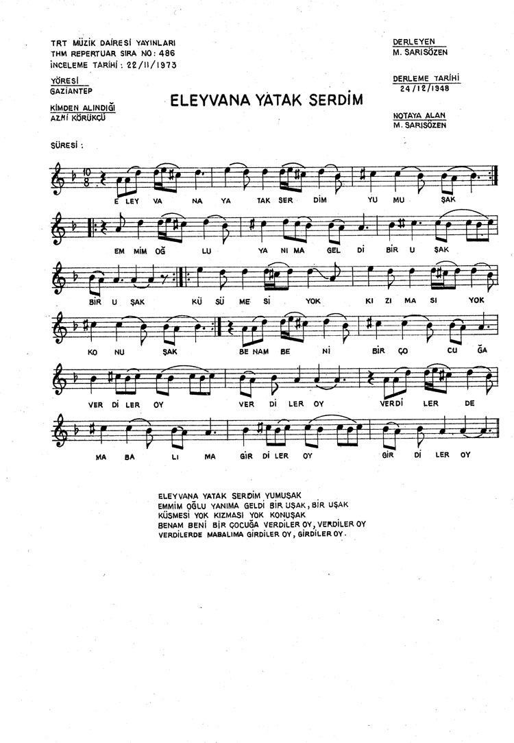 El eyvana yatak serdim yumuşak (Rep.No: 486)
