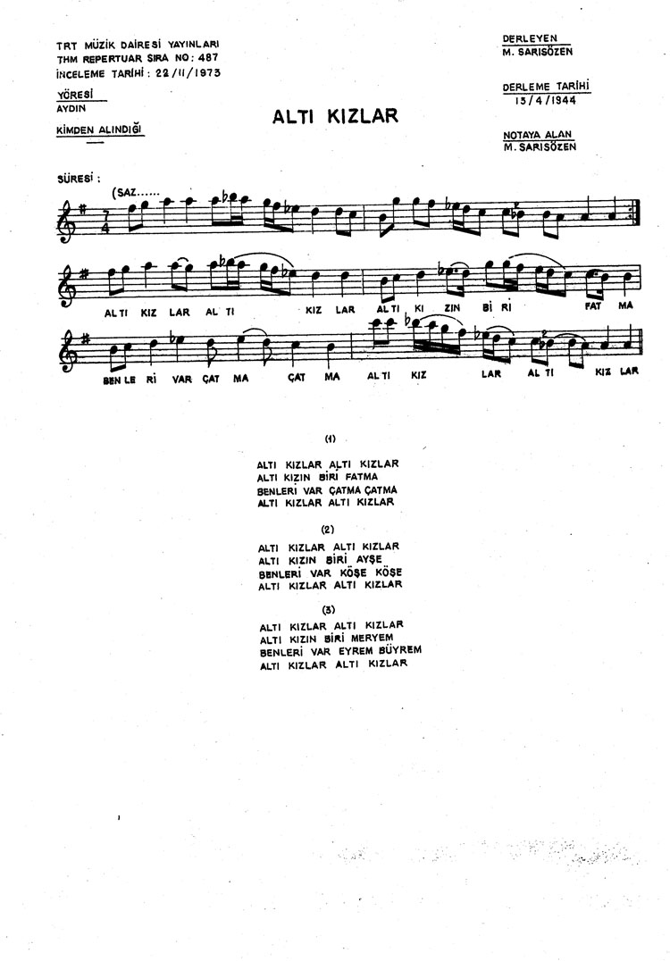 Altı kızlar (Rep.No: 487)