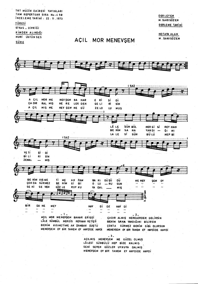 Açıl mor menevşem bahar erişdi (Rep.No: 498)