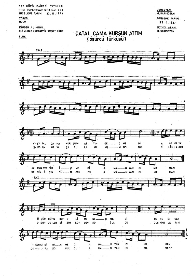 Bu türkünün notasında, sözlerinde veya örnek icrasında bir eksiklik yahut yanlışlık tespit ederseniz, e-mail ile veya WhatsApp hattından bildirim yaparak katkıda bulunabilirsiniz.