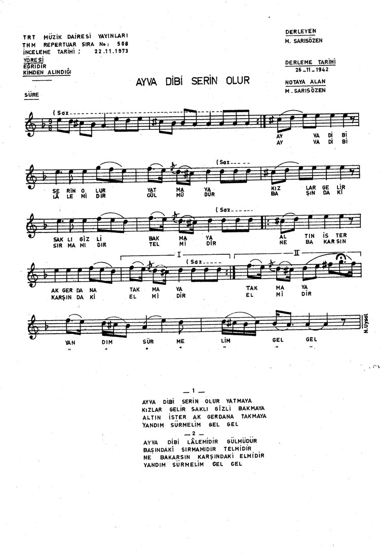 Bu türkünün notasında, sözlerinde veya örnek icrasında bir eksiklik yahut yanlışlık tespit ederseniz, e-mail ile veya WhatsApp hattından bildirim yaparak katkıda bulunabilirsiniz.