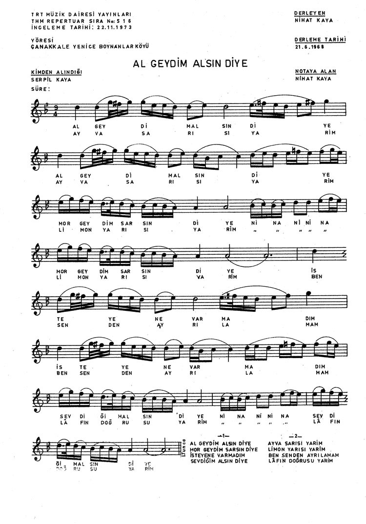 Bu türkünün notasında, sözlerinde veya örnek icrasında bir eksiklik yahut yanlışlık tespit ederseniz, e-mail ile veya WhatsApp hattından bildirim yaparak katkıda bulunabilirsiniz.
