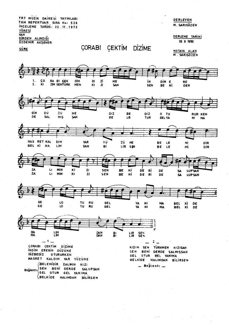Bu türkünün notasında, sözlerinde veya örnek icrasında bir eksiklik yahut yanlışlık tespit ederseniz, e-mail ile veya WhatsApp hattından bildirim yaparak katkıda bulunabilirsiniz.