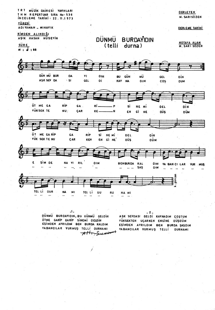 Dün mü buradayıdın bugün mü geldin (Rep.No: 536)