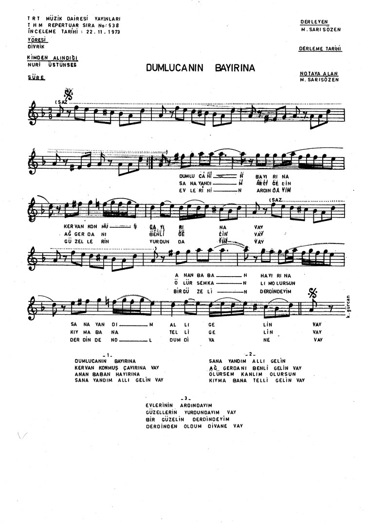 Bu türkünün notasında, sözlerinde veya örnek icrasında bir eksiklik yahut yanlışlık tespit ederseniz, e-mail ile veya WhatsApp hattından bildirim yaparak katkıda bulunabilirsiniz.