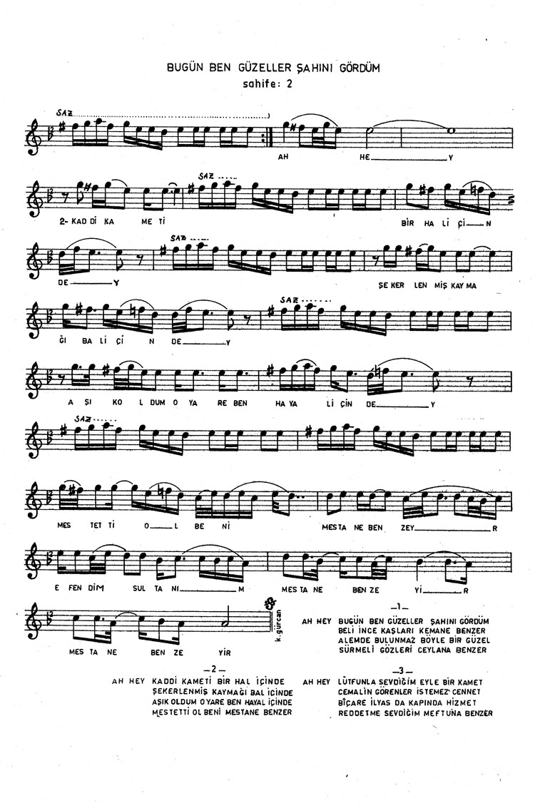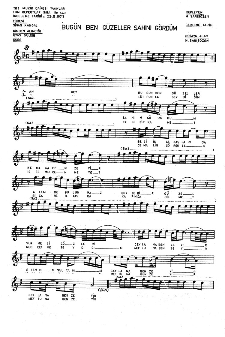 Bugün ben güzeller şahını gördüm (Rep.No: 543)