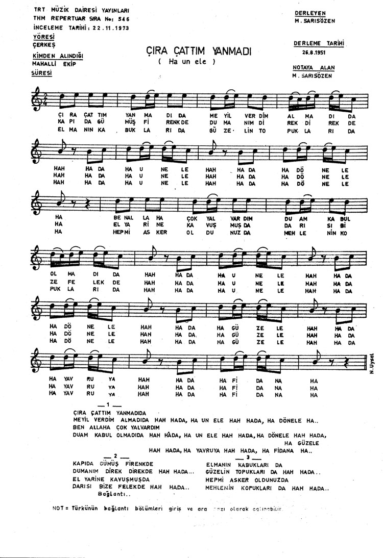 Çıra çattım yanmadı (Rep.No: 546)