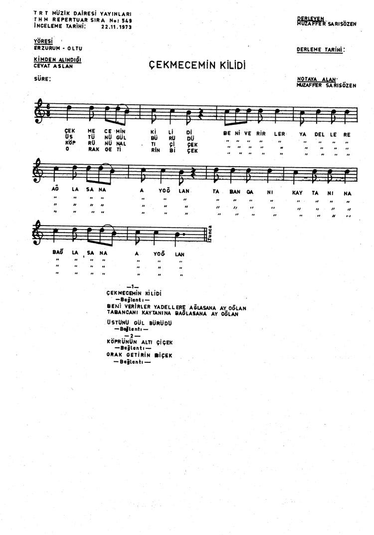 Bu türkünün notasında, sözlerinde veya örnek icrasında bir eksiklik yahut yanlışlık tespit ederseniz, e-mail ile veya WhatsApp hattından bildirim yaparak katkıda bulunabilirsiniz.