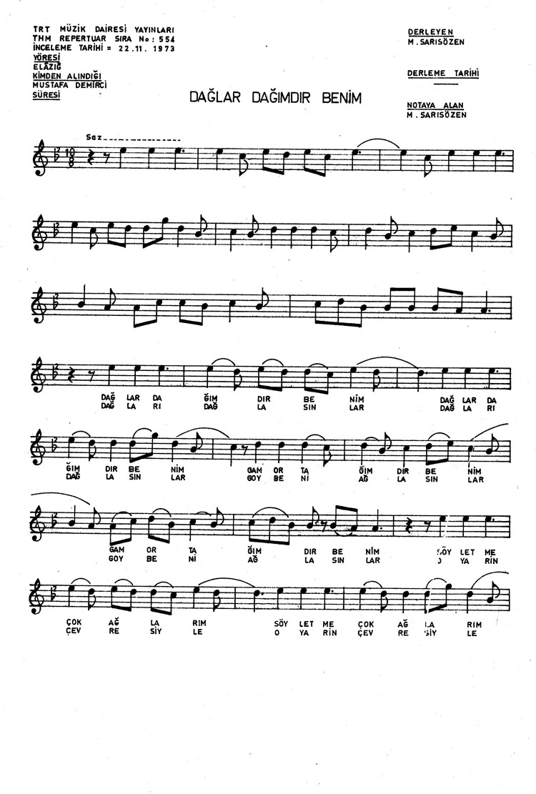 Dağlar dağımdır benim (Rep.No: 554)