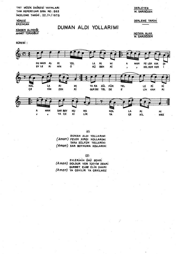 Bu türkünün notasında, sözlerinde veya örnek icrasında bir eksiklik yahut yanlışlık tespit ederseniz, e-mail ile veya WhatsApp hattından bildirim yaparak katkıda bulunabilirsiniz.