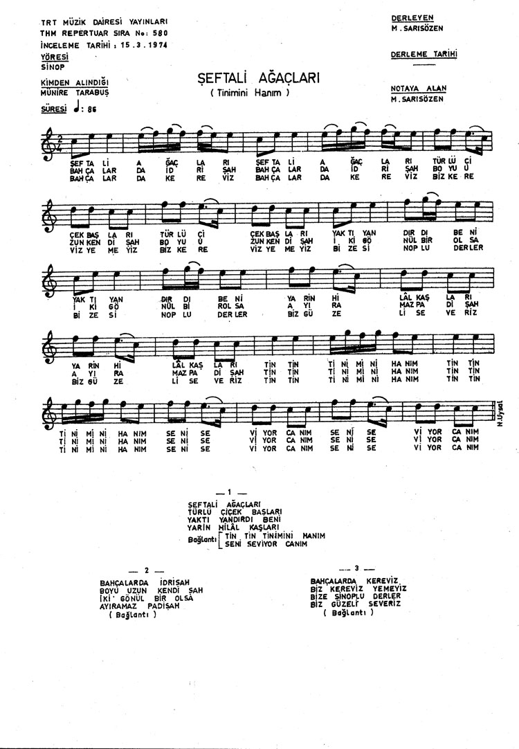 Bu türkünün notasında, sözlerinde veya örnek icrasında bir eksiklik yahut yanlışlık tespit ederseniz, e-mail ile veya WhatsApp hattından bildirim yaparak katkıda bulunabilirsiniz.