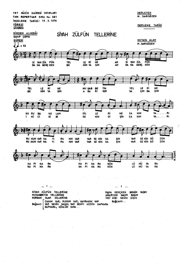 Siyah zülfün tellerine (Rep.No: 581)