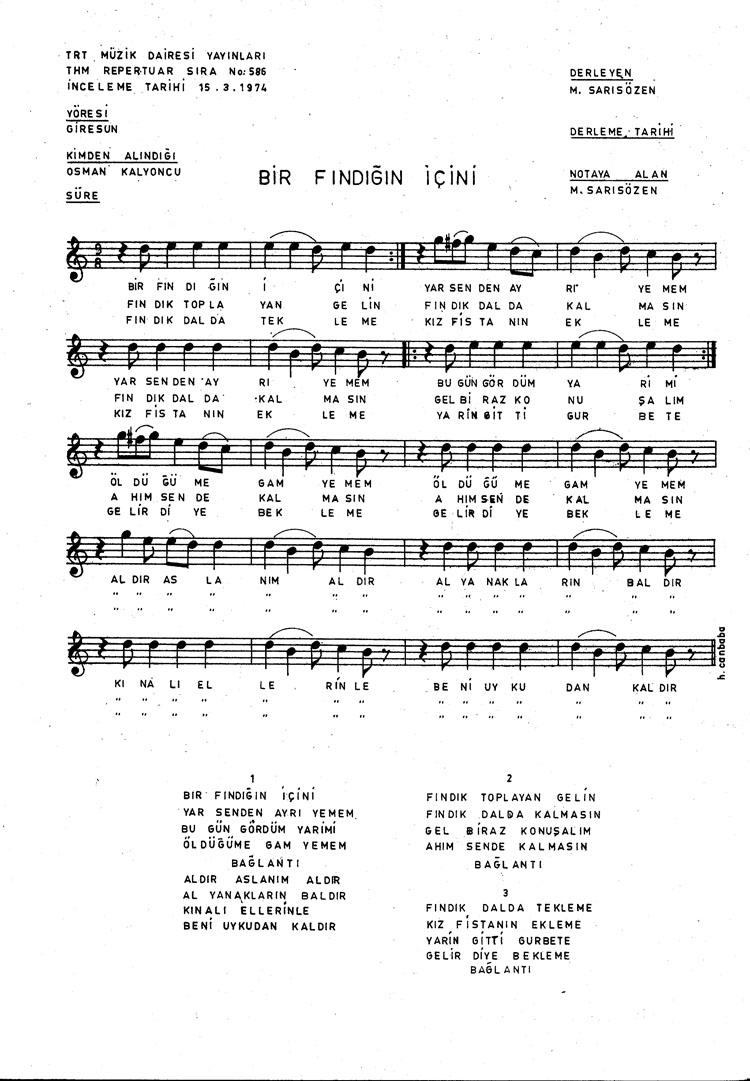 Bir fındığın içini yar senden ayrı yemem (Rep.No: 586)