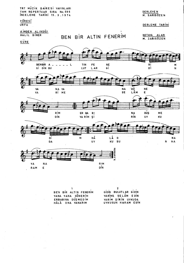 Ben bir altın fenerim (Rep.No: 596)