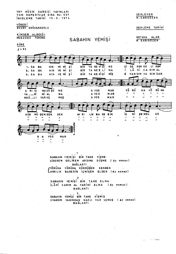 Bu türkünün notasında, sözlerinde veya örnek icrasında bir eksiklik yahut yanlışlık tespit ederseniz, e-mail ile veya WhatsApp hattından bildirim yaparak katkıda bulunabilirsiniz.