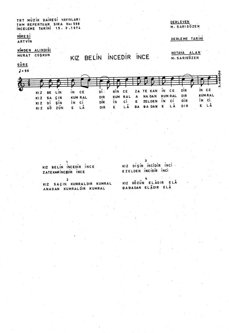 Kız belin incedir ince (Rep.No: 598)