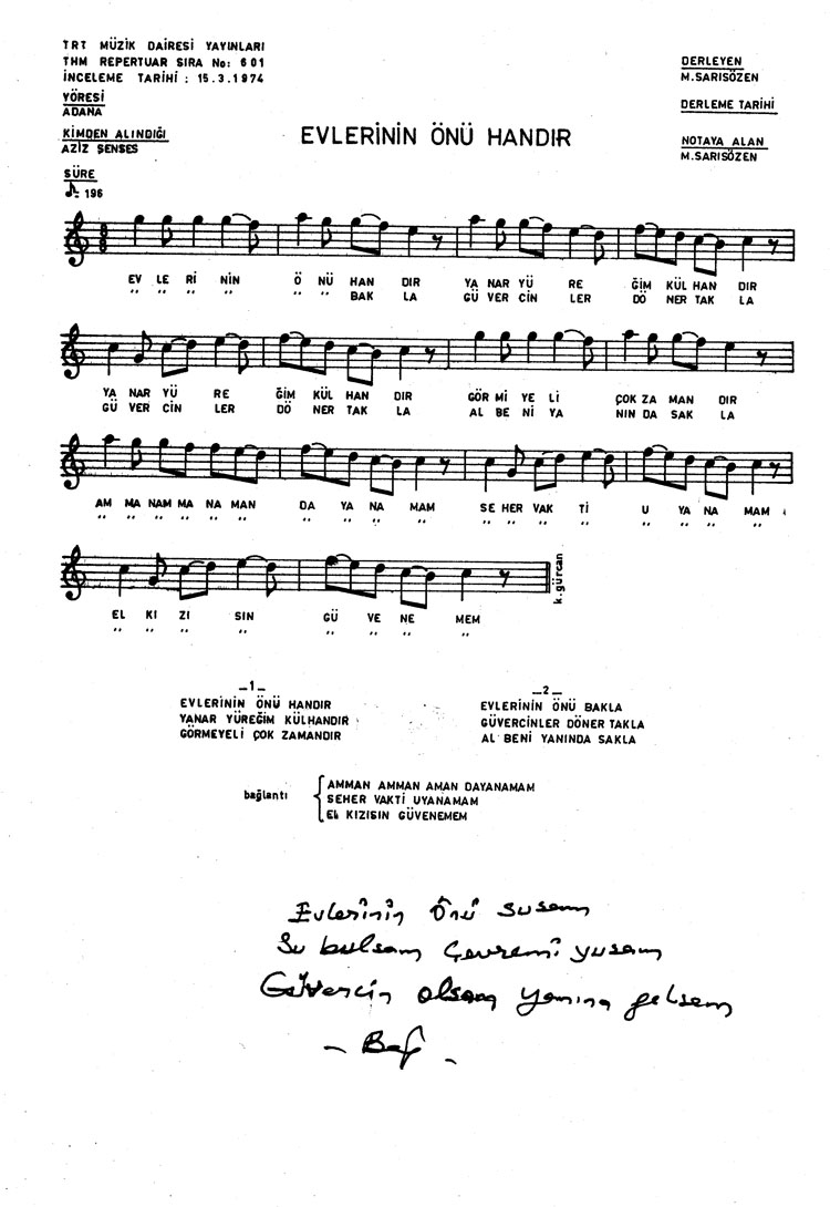 Bu türkünün notasında, sözlerinde veya örnek icrasında bir eksiklik yahut yanlışlık tespit ederseniz, e-mail ile veya WhatsApp hattından bildirim yaparak katkıda bulunabilirsiniz.