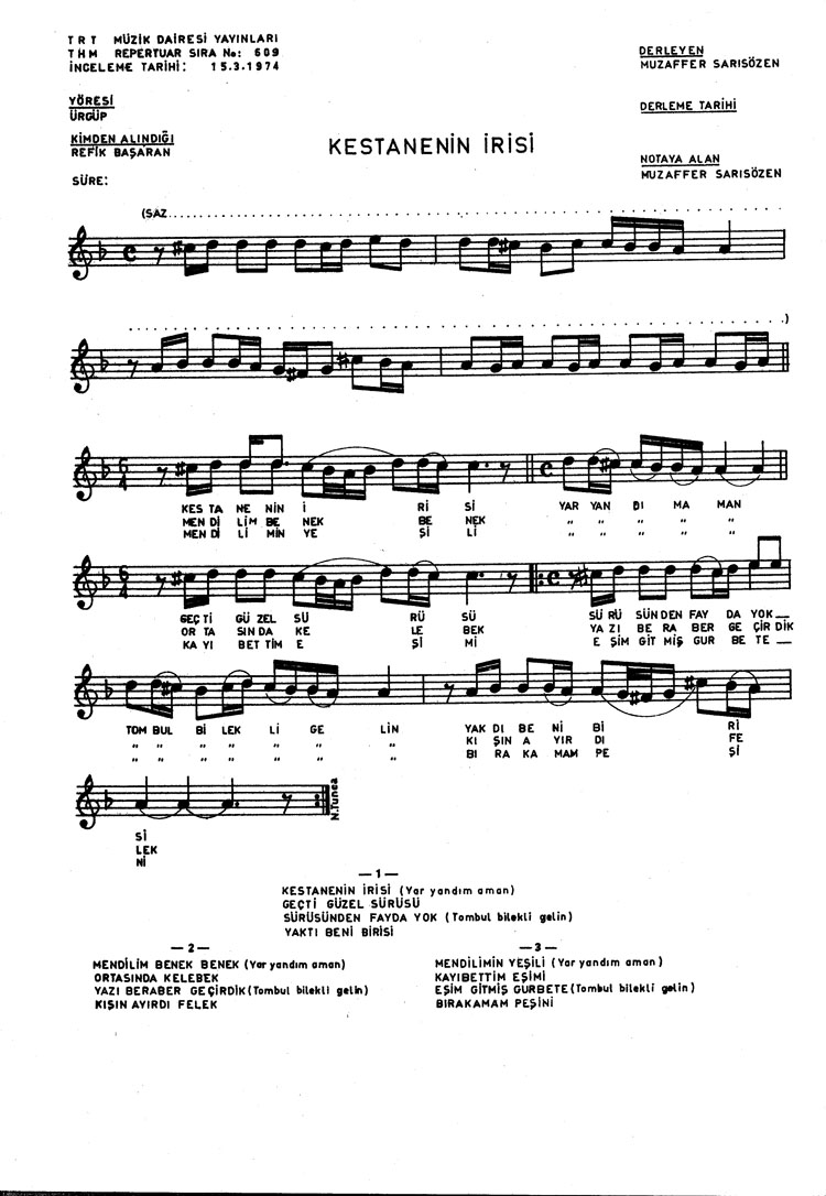 Bu türkünün notasında, sözlerinde veya örnek icrasında bir eksiklik yahut yanlışlık tespit ederseniz, e-mail ile veya WhatsApp hattından bildirim yaparak katkıda bulunabilirsiniz.