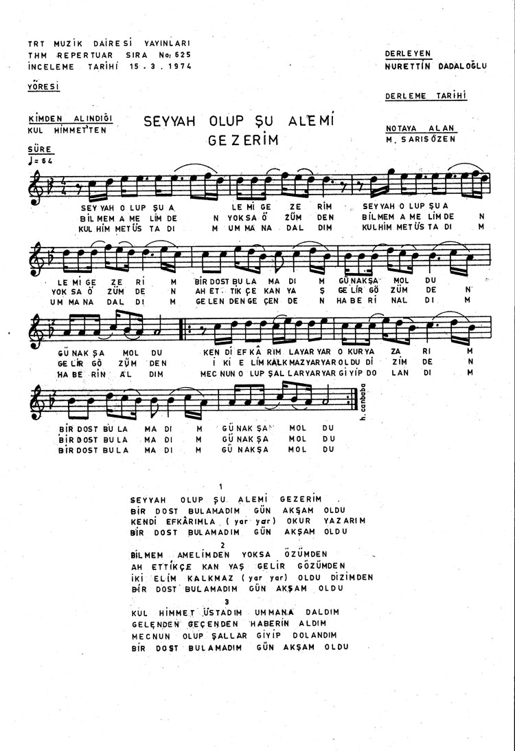 Seyyah olup şu alemi gezerim (Rep.No: 625)