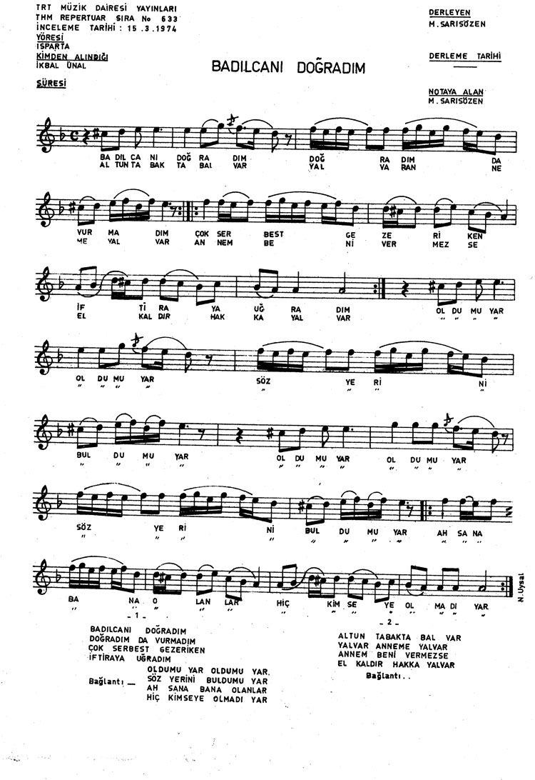Bu türkünün notasında, sözlerinde veya örnek icrasında bir eksiklik yahut yanlışlık tespit ederseniz, e-mail ile veya WhatsApp hattından bildirim yaparak katkıda bulunabilirsiniz.