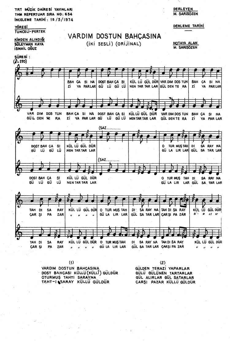 Bu türkünün notasında, sözlerinde veya örnek icrasında bir eksiklik yahut yanlışlık tespit ederseniz, e-mail ile veya WhatsApp hattından bildirim yaparak katkıda bulunabilirsiniz.