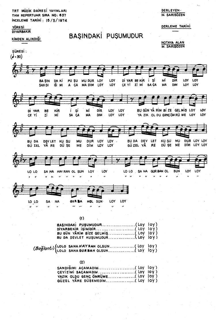 Bu türkünün notasında, sözlerinde veya örnek icrasında bir eksiklik yahut yanlışlık tespit ederseniz, e-mail ile veya WhatsApp hattından bildirim yaparak katkıda bulunabilirsiniz.