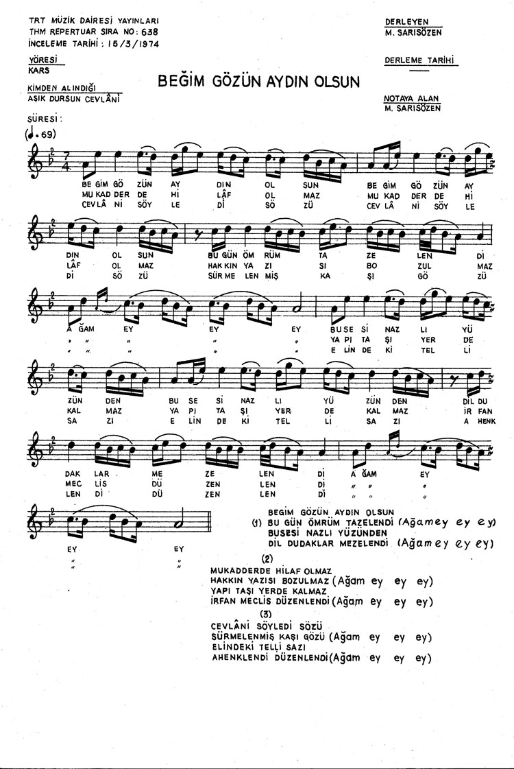 Bu türkünün notasında, sözlerinde veya örnek icrasında bir eksiklik yahut yanlışlık tespit ederseniz, e-mail ile veya WhatsApp hattından bildirim yaparak katkıda bulunabilirsiniz.