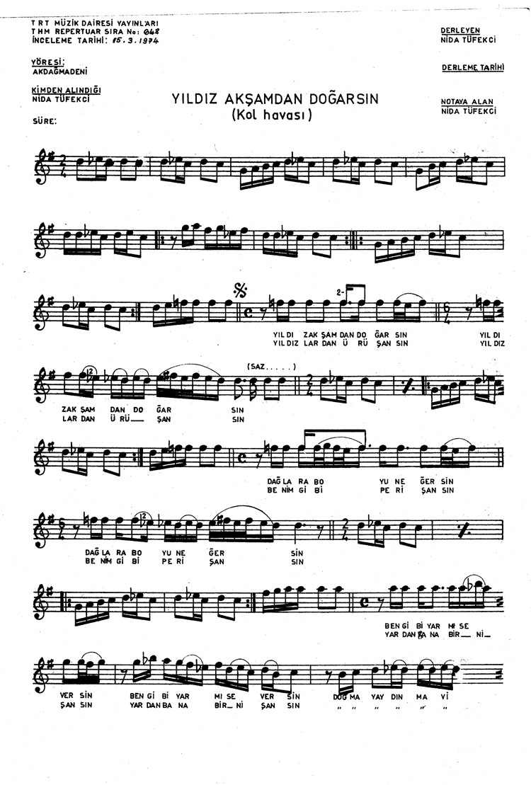 Bu türkünün notasında, sözlerinde veya örnek icrasında bir eksiklik yahut yanlışlık tespit ederseniz, e-mail ile veya WhatsApp hattından bildirim yaparak katkıda bulunabilirsiniz.