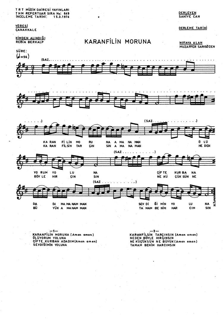 Bu türkünün notasında, sözlerinde veya örnek icrasında bir eksiklik yahut yanlışlık tespit ederseniz, e-mail ile veya WhatsApp hattından bildirim yaparak katkıda bulunabilirsiniz.