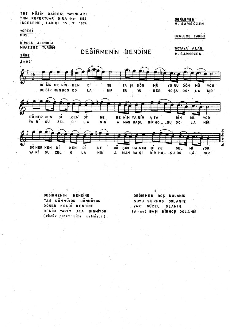 Bu türkünün notasında, sözlerinde veya örnek icrasında bir eksiklik yahut yanlışlık tespit ederseniz, e-mail ile veya WhatsApp hattından bildirim yaparak katkıda bulunabilirsiniz.