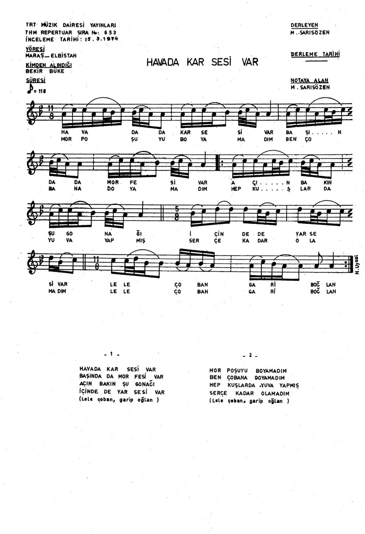 Bu türkünün notasında, sözlerinde veya örnek icrasında bir eksiklik yahut yanlışlık tespit ederseniz, e-mail ile veya WhatsApp hattından bildirim yaparak katkıda bulunabilirsiniz.