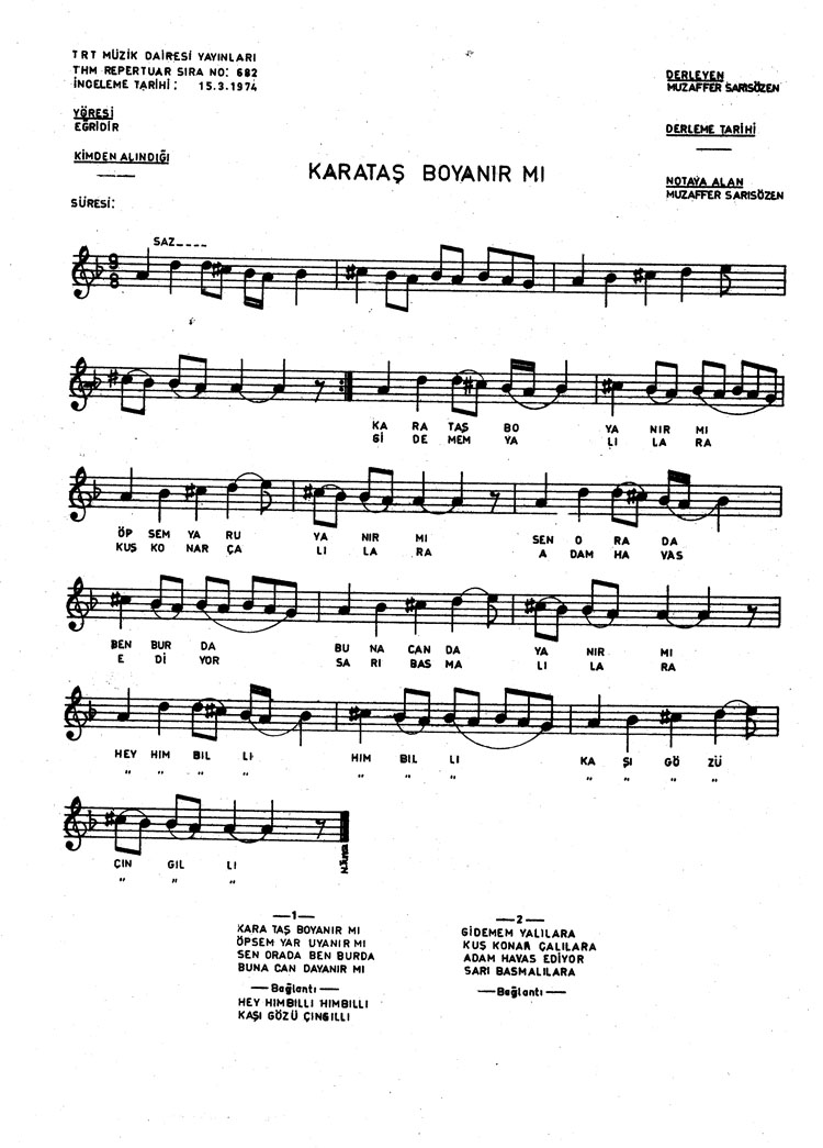 Bu türkünün notasında, sözlerinde veya örnek icrasında bir eksiklik yahut yanlışlık tespit ederseniz, e-mail ile veya WhatsApp hattından bildirim yaparak katkıda bulunabilirsiniz.