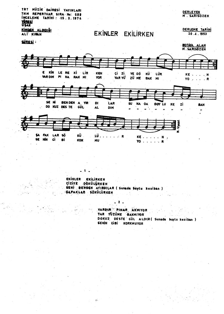 Bu türkünün notasında, sözlerinde veya örnek icrasında bir eksiklik yahut yanlışlık tespit ederseniz, e-mail ile veya WhatsApp hattından bildirim yaparak katkıda bulunabilirsiniz.