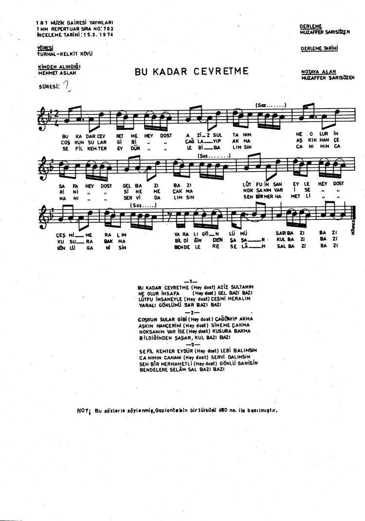 Bu kadar cevretme aziz sultanım (Rep.No: 702)