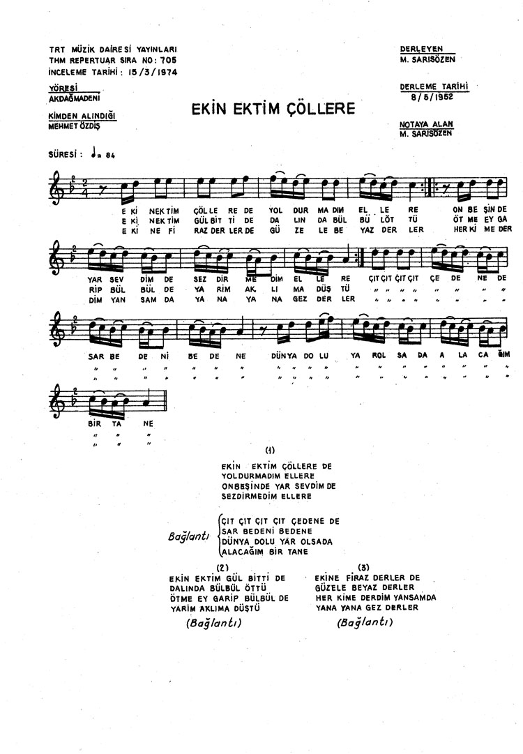 Ekin ektim çöllere (Çıt çıt çedene) (Rep.No: 705)