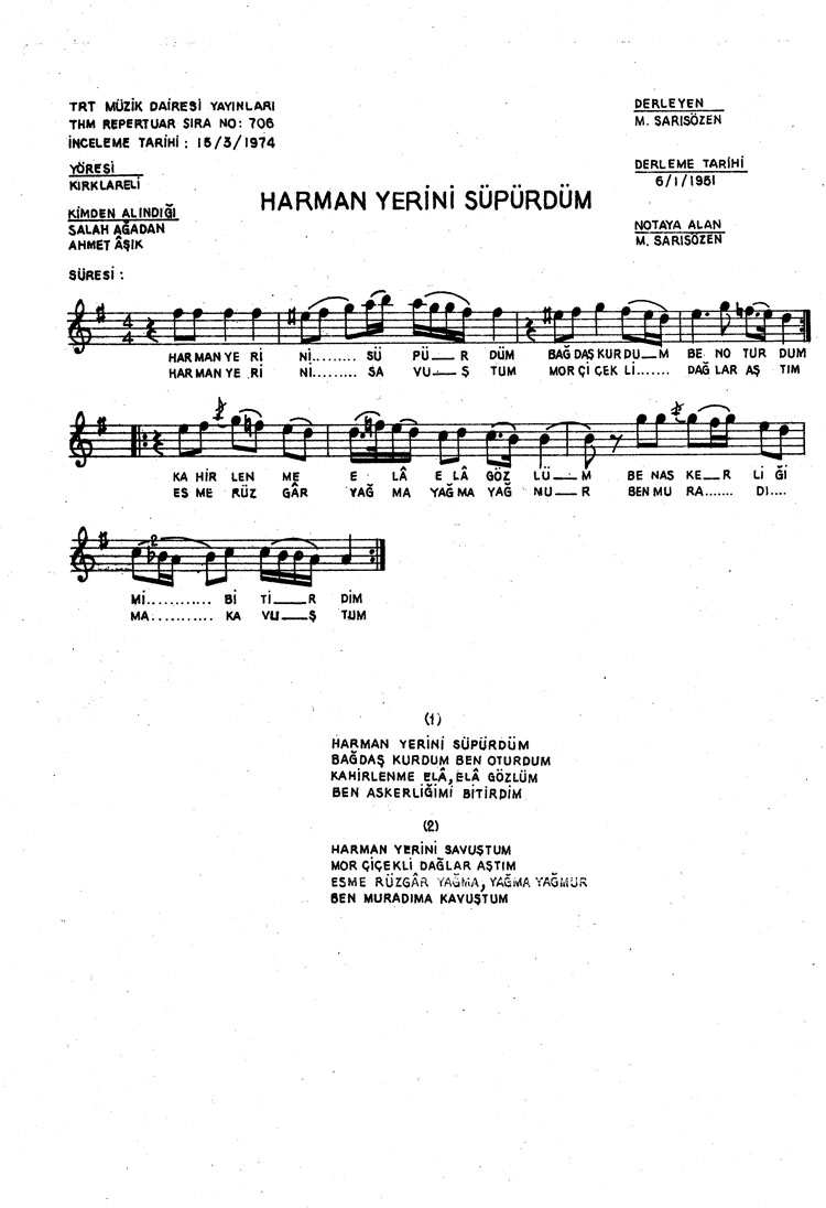Harman yerini süpürdüm (Rep.No: 706)