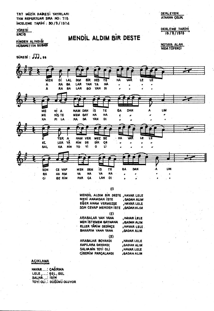 Mendil aldım bir deste (Rep.No: 715)