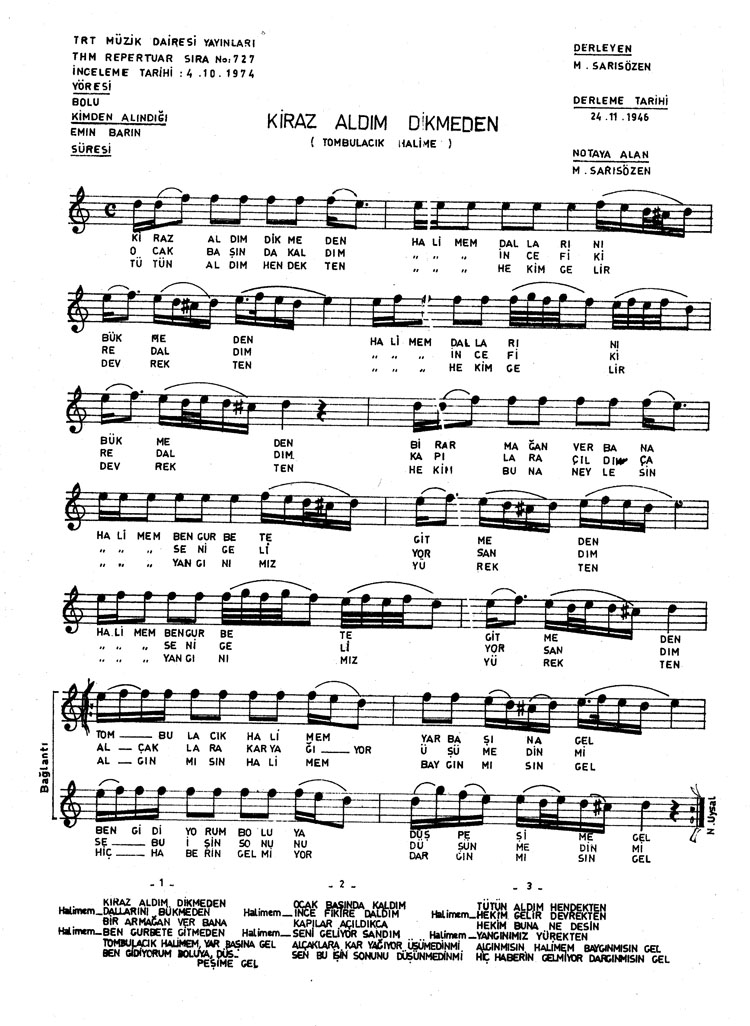 Kiraz aldım dikmeden (Rep.No: 727)