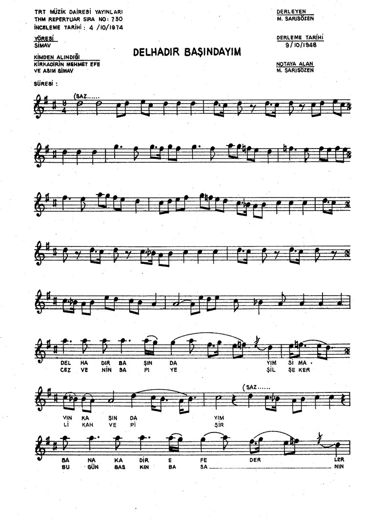 Delhadır başındayım (Rep.No: 730)