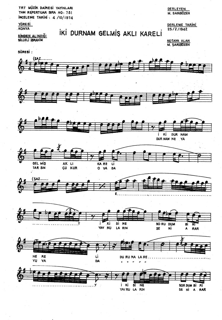 İki durnam gelmiş aklı kareli (Rep.No: 731)