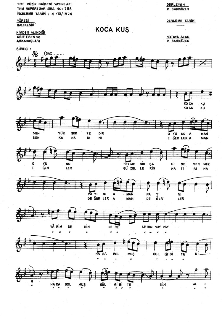 Bu türkünün notasında, sözlerinde veya örnek icrasında bir eksiklik yahut yanlışlık tespit ederseniz, e-mail ile veya WhatsApp hattından bildirim yaparak katkıda bulunabilirsiniz.