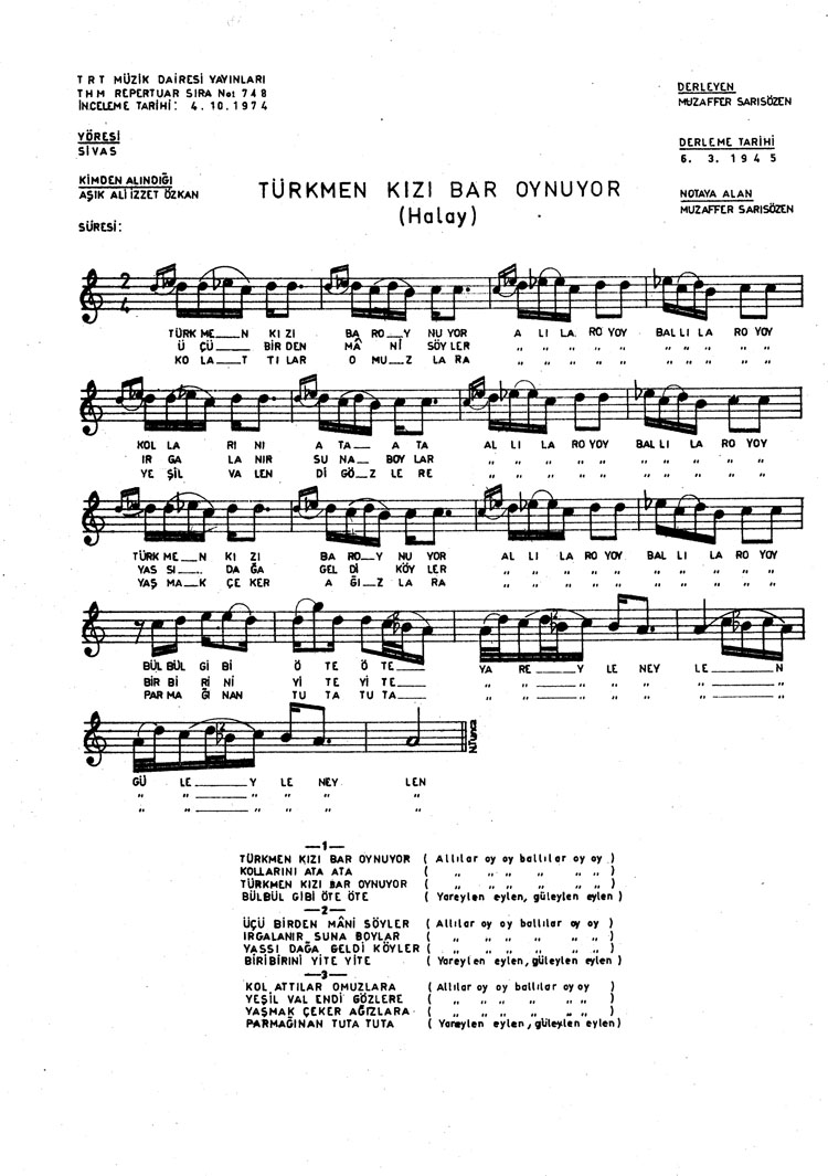 Bu türkünün notasında, sözlerinde veya örnek icrasında bir eksiklik yahut yanlışlık tespit ederseniz, e-mail ile veya WhatsApp hattından bildirim yaparak katkıda bulunabilirsiniz.
